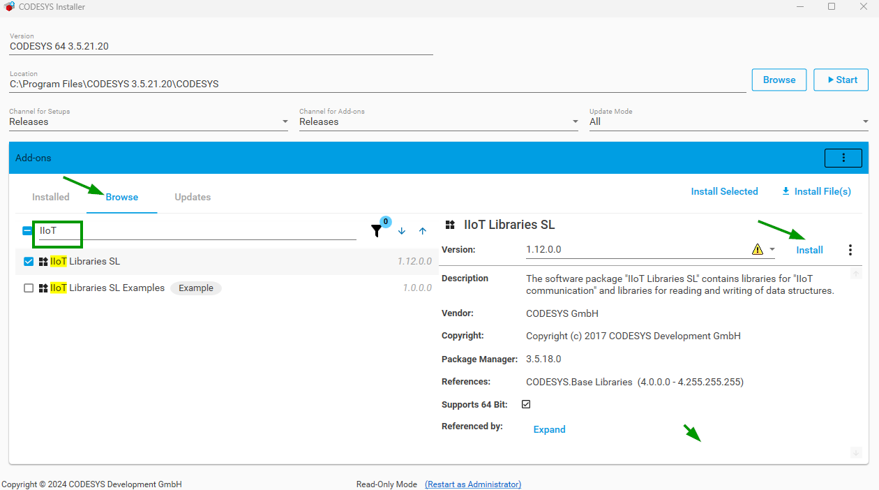 To install the CODESYS IIoT Libraries SL dependency, proceed as follows: