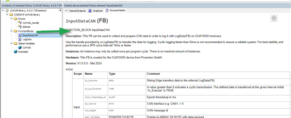 The Proemion CANlink® mobile 10000 library for the CODESYS Development System is available at: Go to Download Center > 01_Proemion_Devices > 09_CANlink mobile 10000 > 10_Other Software. It also includes general descriptions and specific documentation for each feature.