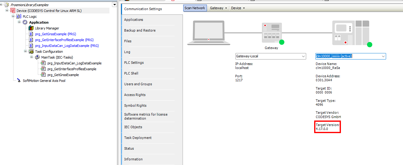 - You can also verify the version directly in CODESYS when connecting to the device (see screenshot below).