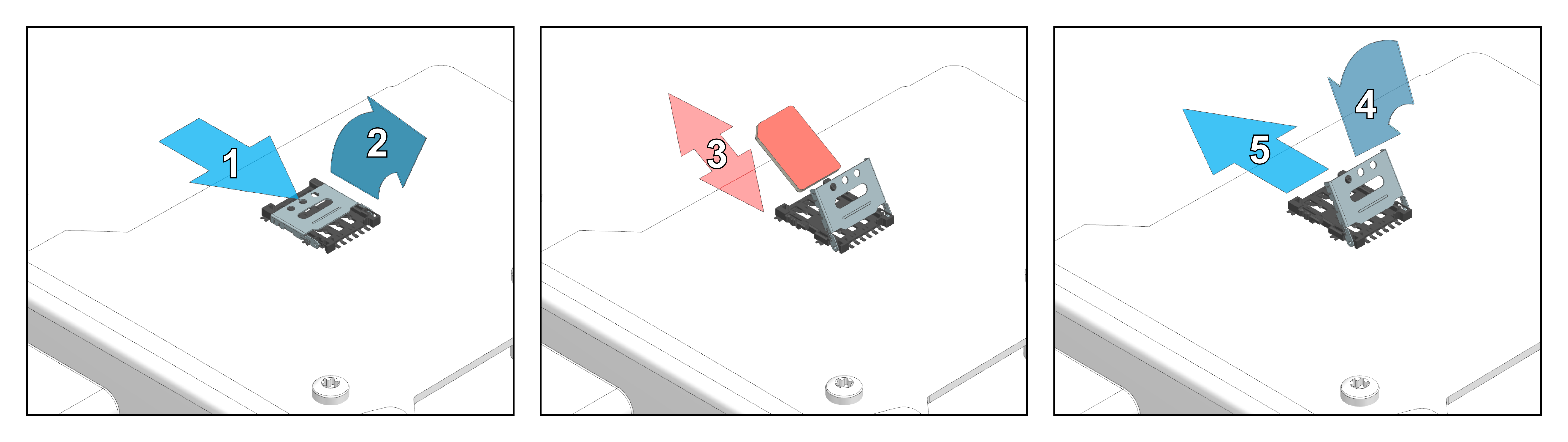 The following figure shows the steps required to insert or replace the nano-SIM card.