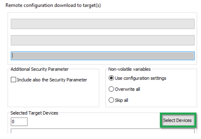 Click on the SELECT DEVICES button in the window REMOTE CONFIGURATION DOWNLOAD TO TARGET(S) window.