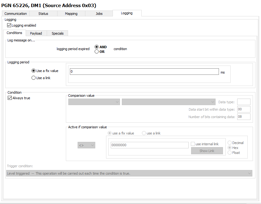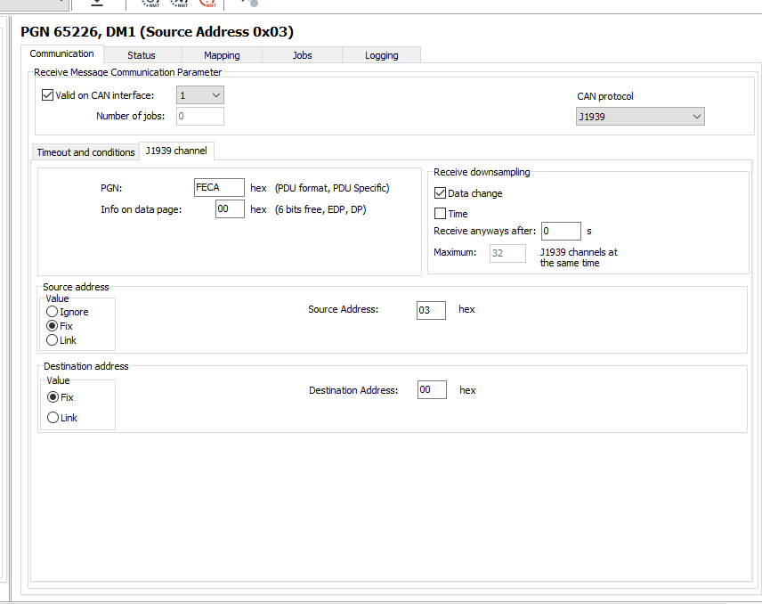 It is possible to configure the logging of more than one source address. For a detailed description of J1939 DM1, read J1939 DM1 DM2.