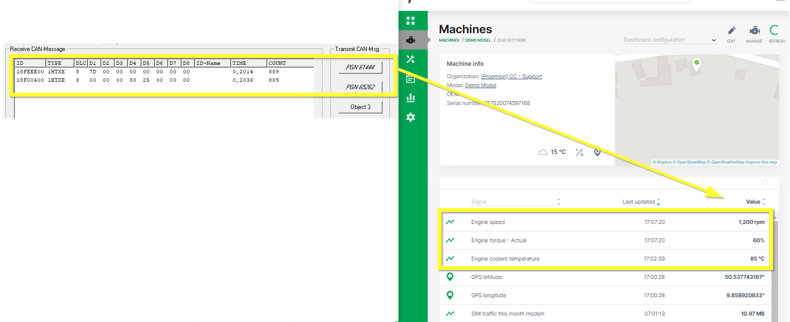 - Verify PGN/SPN assignment in Proemion Configurator matches your CAN system.