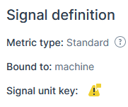 | Signal Unit | The (predefined) unit the metrics are measured in. If there is no unit defined for the unit, a conflict message shows up. |