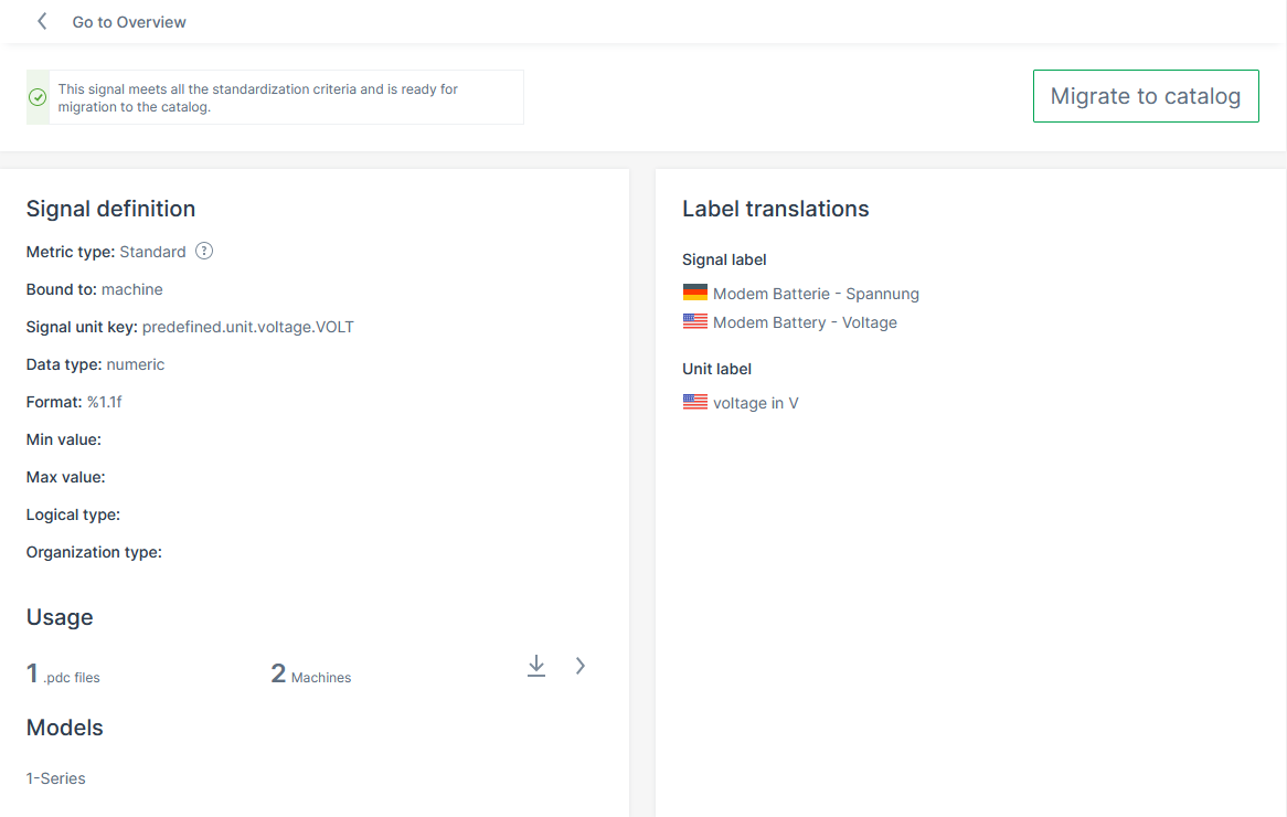 For information on how to migrate signals, read the Migration Guide for the Signal Catalog. Click here for the migration guide PDF: Migration Guide for the Signal Catalog PDF.