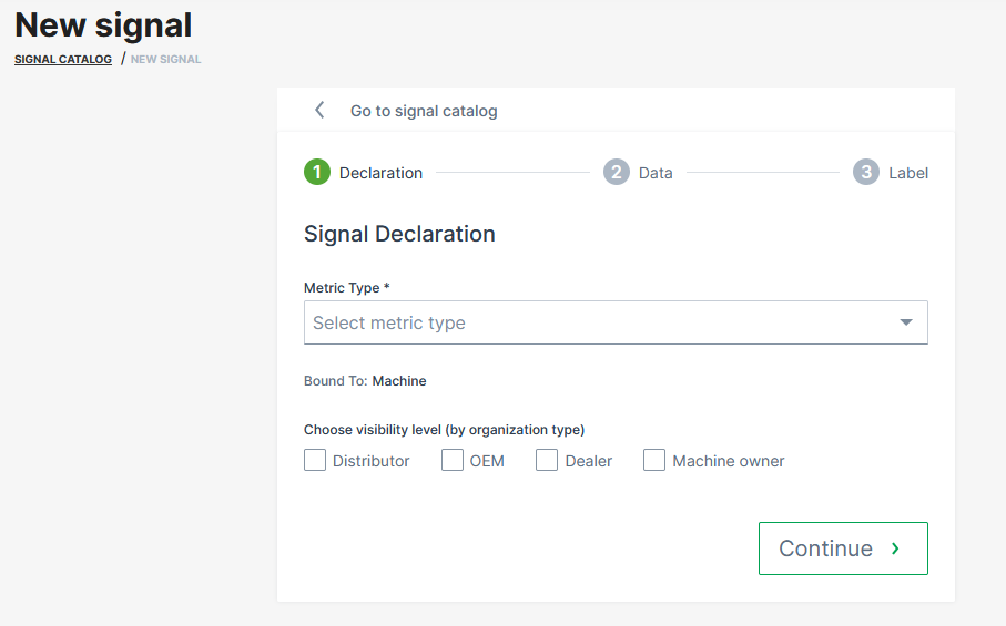 Permissions: Shows which Organization Type is enabled to view this signal, e.g. "Distributor", "OEM", "Machine Owner".