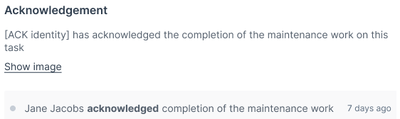 Acknowledging a maintenance task means adding your signature in order to confirm the completion of the task.
