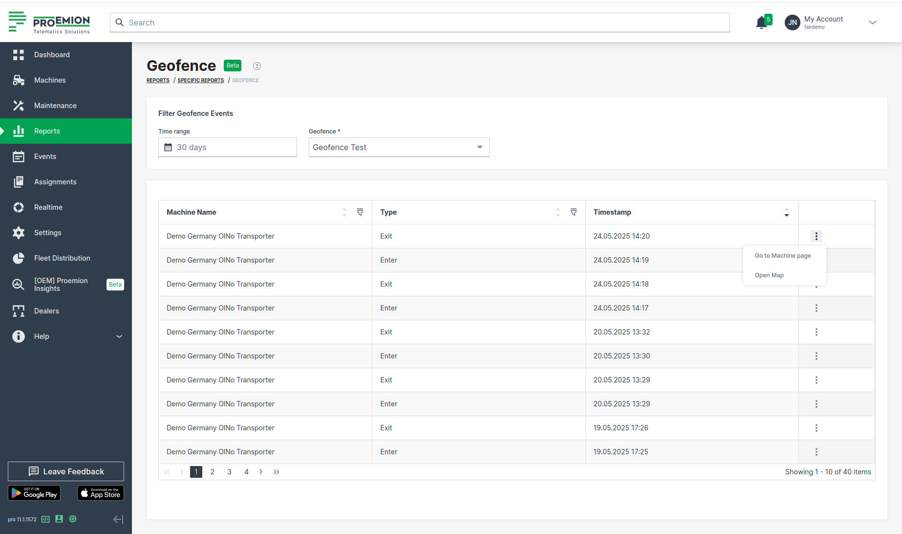 Users subscribed to GeoFence events, get an email when a machine from the business unit enters or leaves a GeoFence.