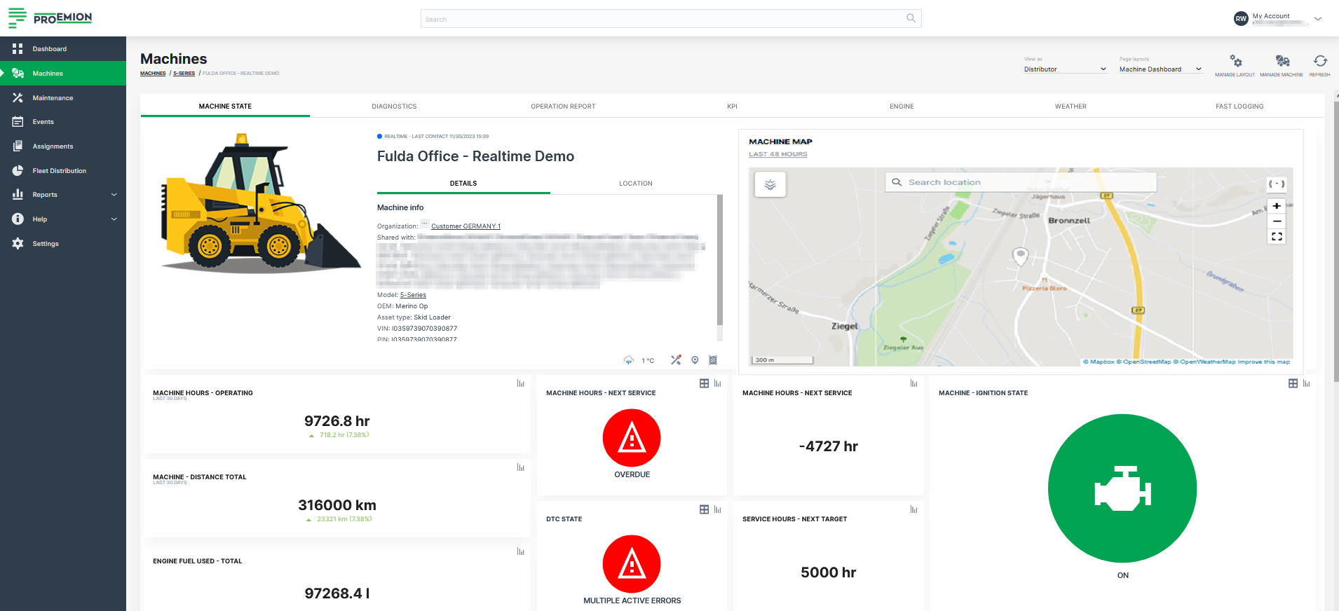 The model associated dashboard displays the required datasets and information for specific machine models and herewith for all machines which are assigned to this model. The dashboard is displayed in a dedicated Machine Page for each machine belonging to this model.
