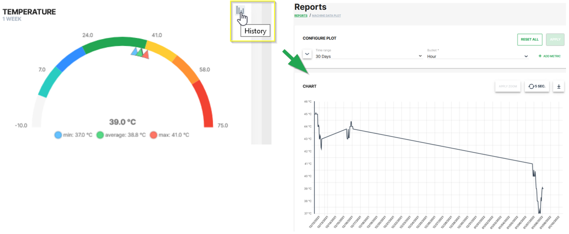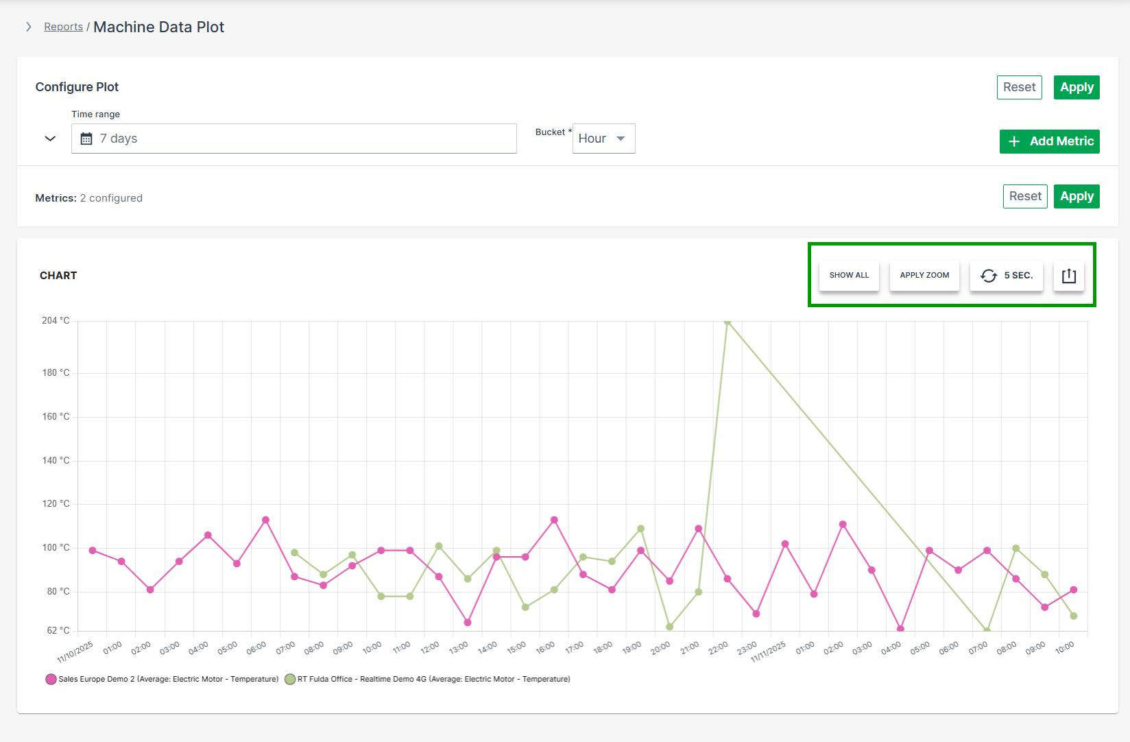- Configure the Plot with a time range of max. 7 days, 10 machines and 10 signals.