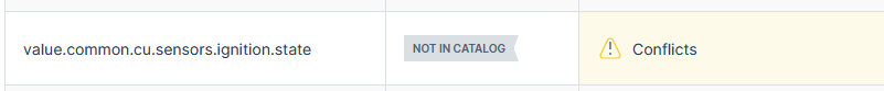 Signals that have conflicts cannot be migrated immediately, for example, when the same signal uses different units in different PDCs, e.g. meter and kilometer. The conflict icons in the Signal Catalog table and details indicate the signal definition values with conflicts: