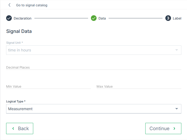 The Signal Catalog offers a centralized management of the signals and their definitions, i.e. signal properties, e.g. the signal key, label, unit and format.