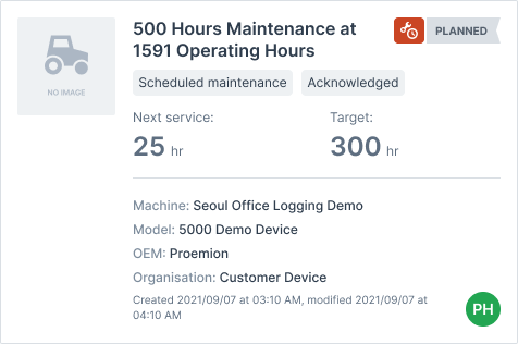 The acknowledgement process, i.e. validating the identity and collecting the signature, takes place in the Machine Companion App only, see Acknowledge Maintenance Tasks in the Machine Companion App Manual.