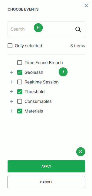 | 6 | Only selected (checkbox) | Only display events with a check mark next to it in the list. |