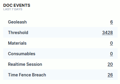 The Events widget allows you to view the number of selected events for your organization. For more information about this functionality, see Events.