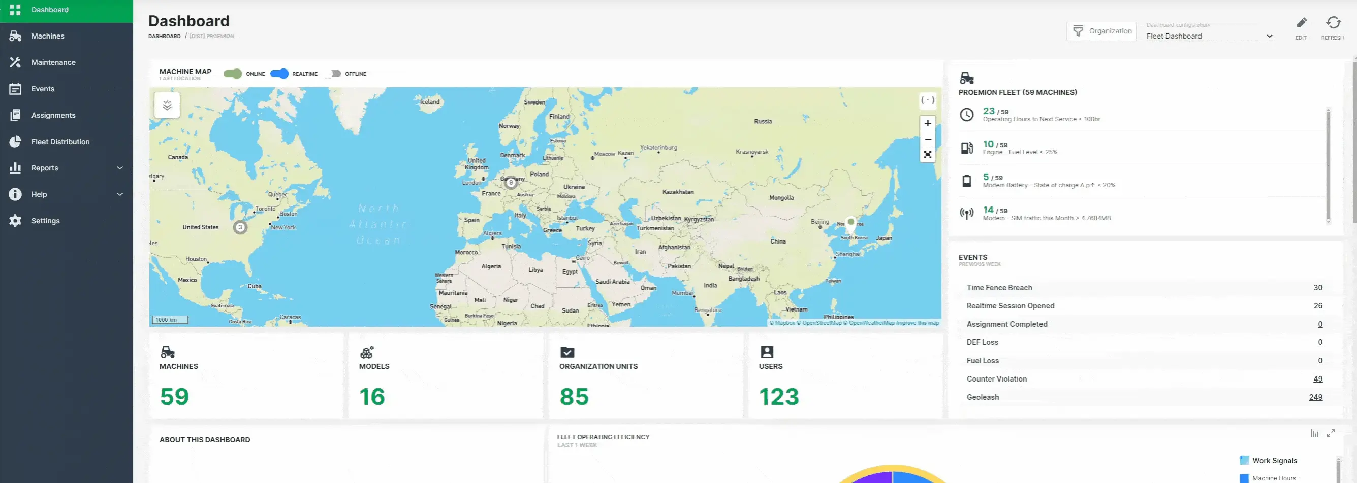 Visualization of machine details like location and other signals on a model/machine level or organization level.