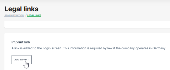 To add an Imprint, select Settings > Portal Appearance > Legal links.