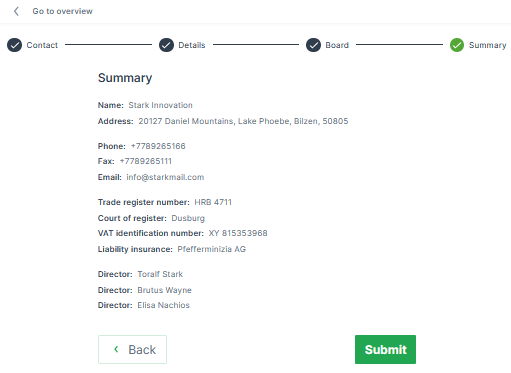 Figure 10: Summary and Submit button ✓ The message Imprint created successfully appears in the upper right corner.