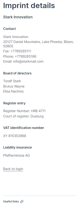 Due to legal regulations, it may be necessary to store your own imprint for the respective data portal account. A fictitious example below shows how this can be achieved.