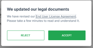 The first time a user logs in and subsequently every time the documents are updated - specifically PP and EULA - they are prompted for their explicit consent before proceeding to use the DataPortal. This also applies to the banner.