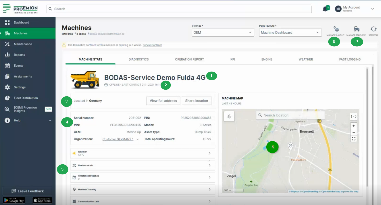 The navigation buttons in the top-right corner allow you to switch between the Machine Pages of your organization's machines (not shown when more than 12 machines are available)