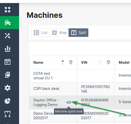 You can also open the Machine Quick Look panel from the new quick look preview button when you hover over a machine row: