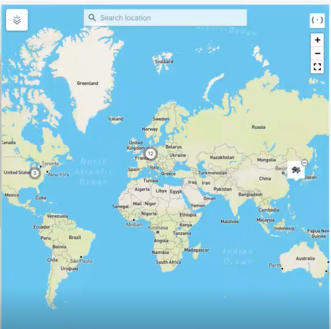 The map in the Machines Overview shows the most recent recorded positions of all machines. Machines that are located in close proximity to one another are grouped together and identified by a cluster symbol. Zooming in or selecting the symbol shows each individual machine.