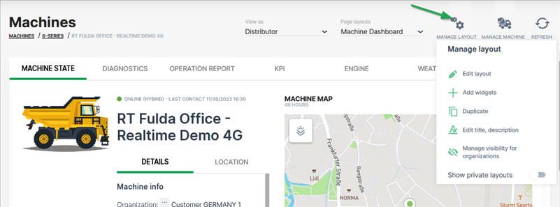 The Manage Layout configuration options are to be found in the drop-down menu via Manage Layout in the DataPortal.