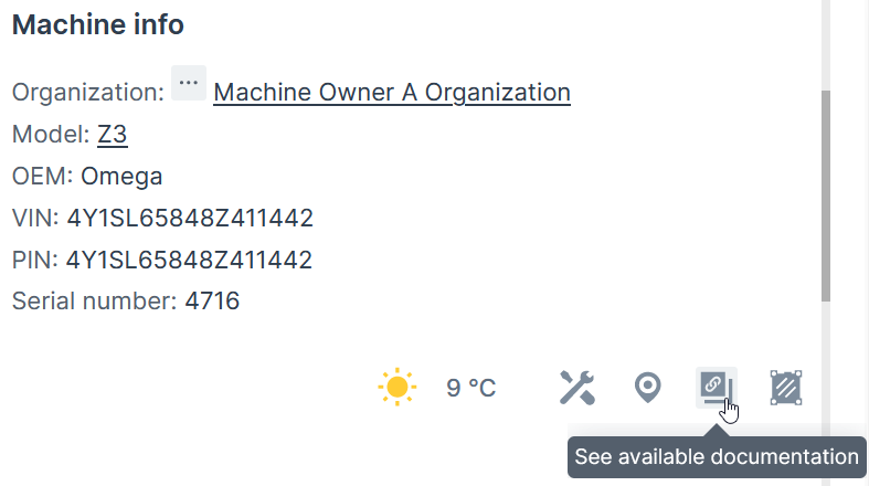 This option allows administrators the assignment of model-related service documentation and other external resources, which will be displayed in the Machine Master Data.