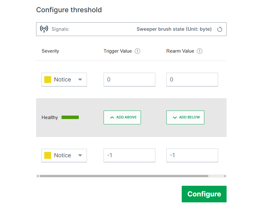 Select the signal from the list and configure its threshold.