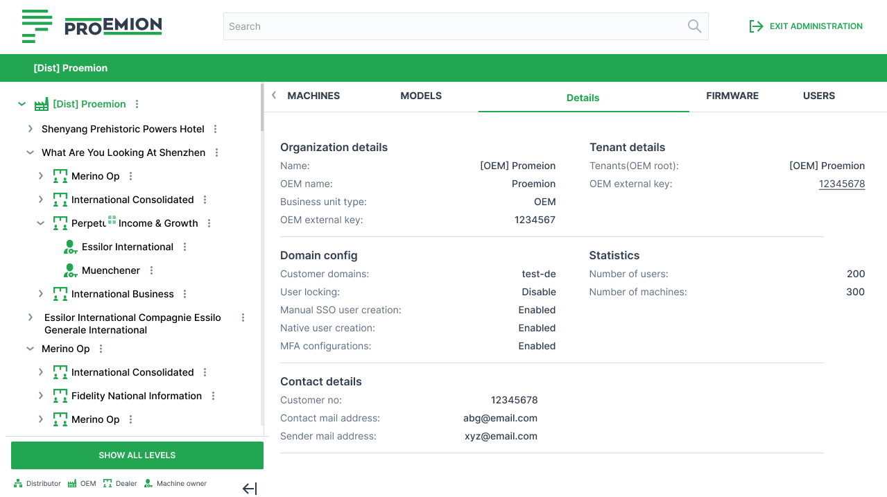 | Tenant details | Tenants (OEM root) | Root tenant owning the organization |