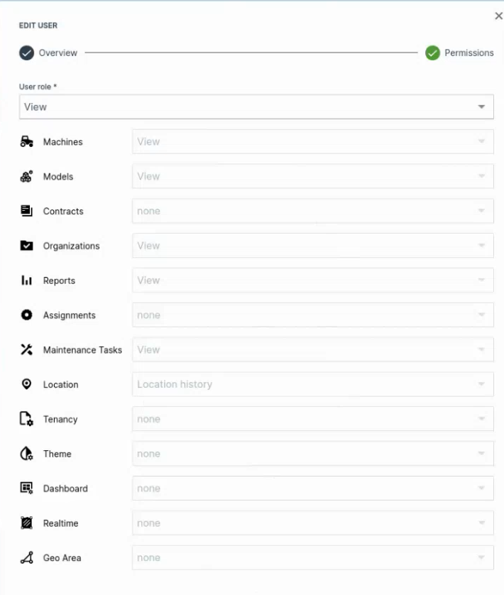The Organization Permission Set allows users to edit and manage users and machines of the organization (unit).