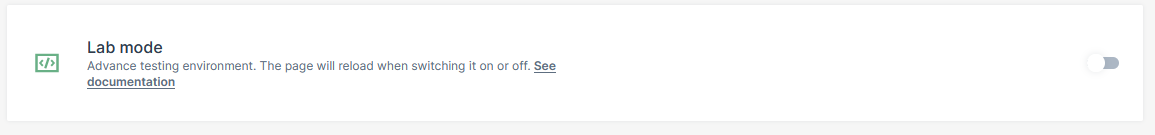 In the Account Settings menu, the Lab Mode enables functionalities in an experimental state activated via Feature Switch in the Organization Administration menu