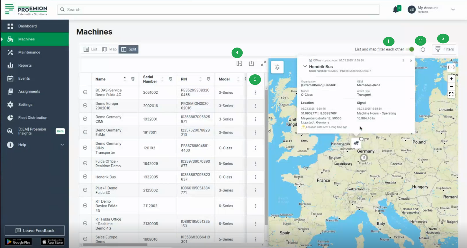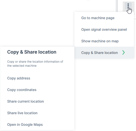 | Enable visibility of the right panel with the overview of signals | Signal Overview Panel appears when selecting a machine from the machine list or on the map. |