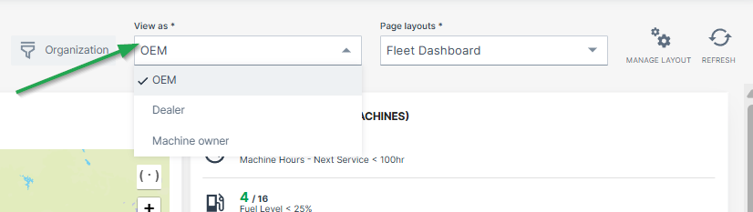Especially when having a rather complex organization tree and a fleet with different machine types and models, the assignment of a dashboard to the organization and model has an important role for the visibility down to the machine owner organization through the entire organization tree.