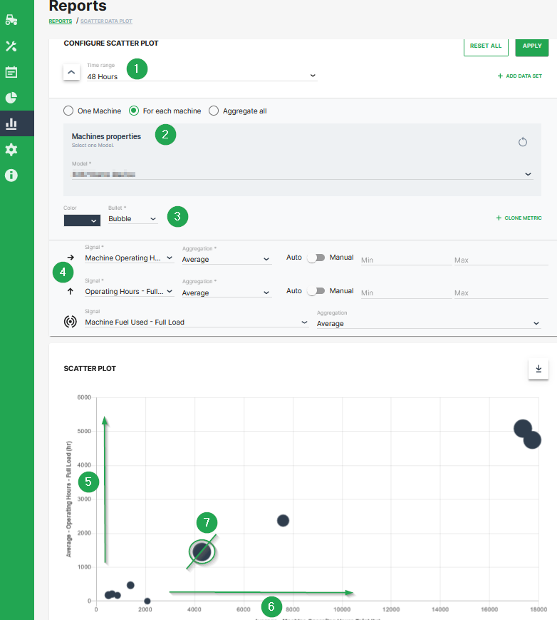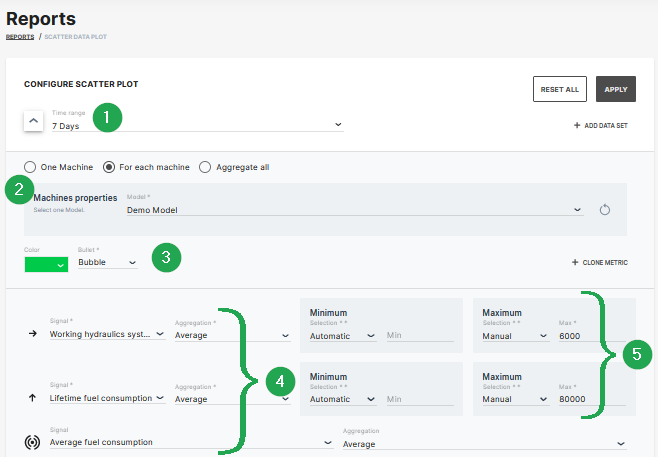 | 2 | Selection of a specific machine(s), machines of a certain model and optional aggregation of entire data set. |