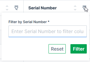 Filter and search of specific columns are available by clicking the filter icon and entering the searched text into the fields at the top of each column.