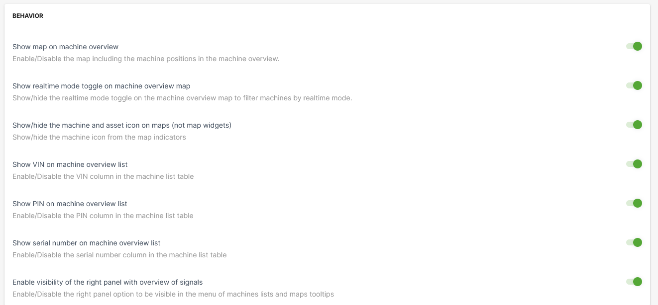 The Behavior options allow you to customize the user experience in the Machines Overview.