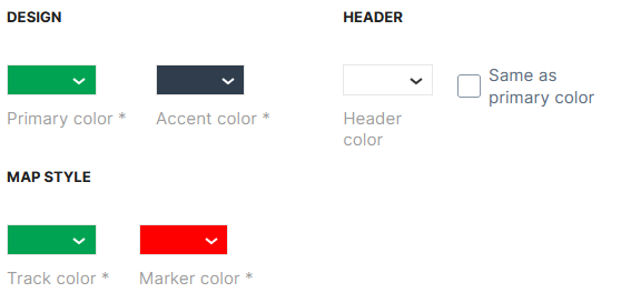 In the following section, adapt the primary, accent and header colors for your brand and the map style.