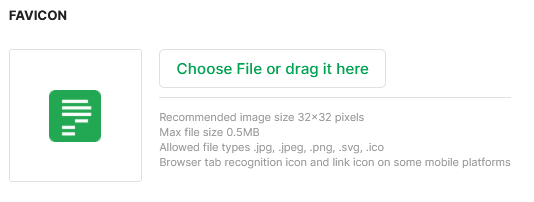 In the following sections, the brand name and the favicon are defined which should then be displayed on the webpage tab.