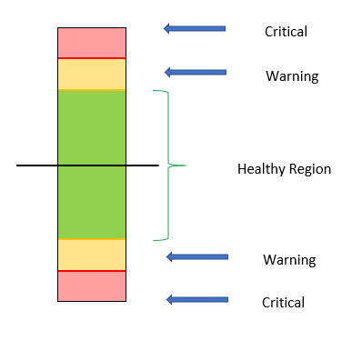 A severity level indicates the signal value is outside of (above or below) the healthy range. If a value breaches a threshold but later returns to the healthy range, the threshold is then rearmed.