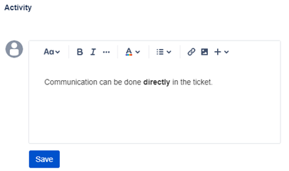At the bottom of the ticket, you find the Activity area.