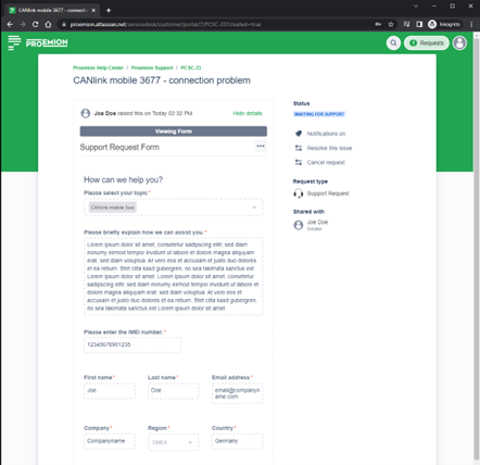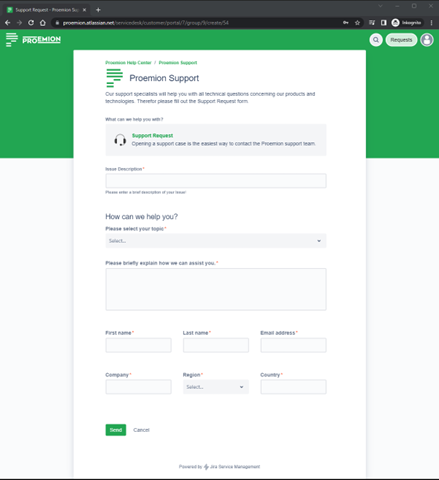 Figure 5: Jira Support Request -